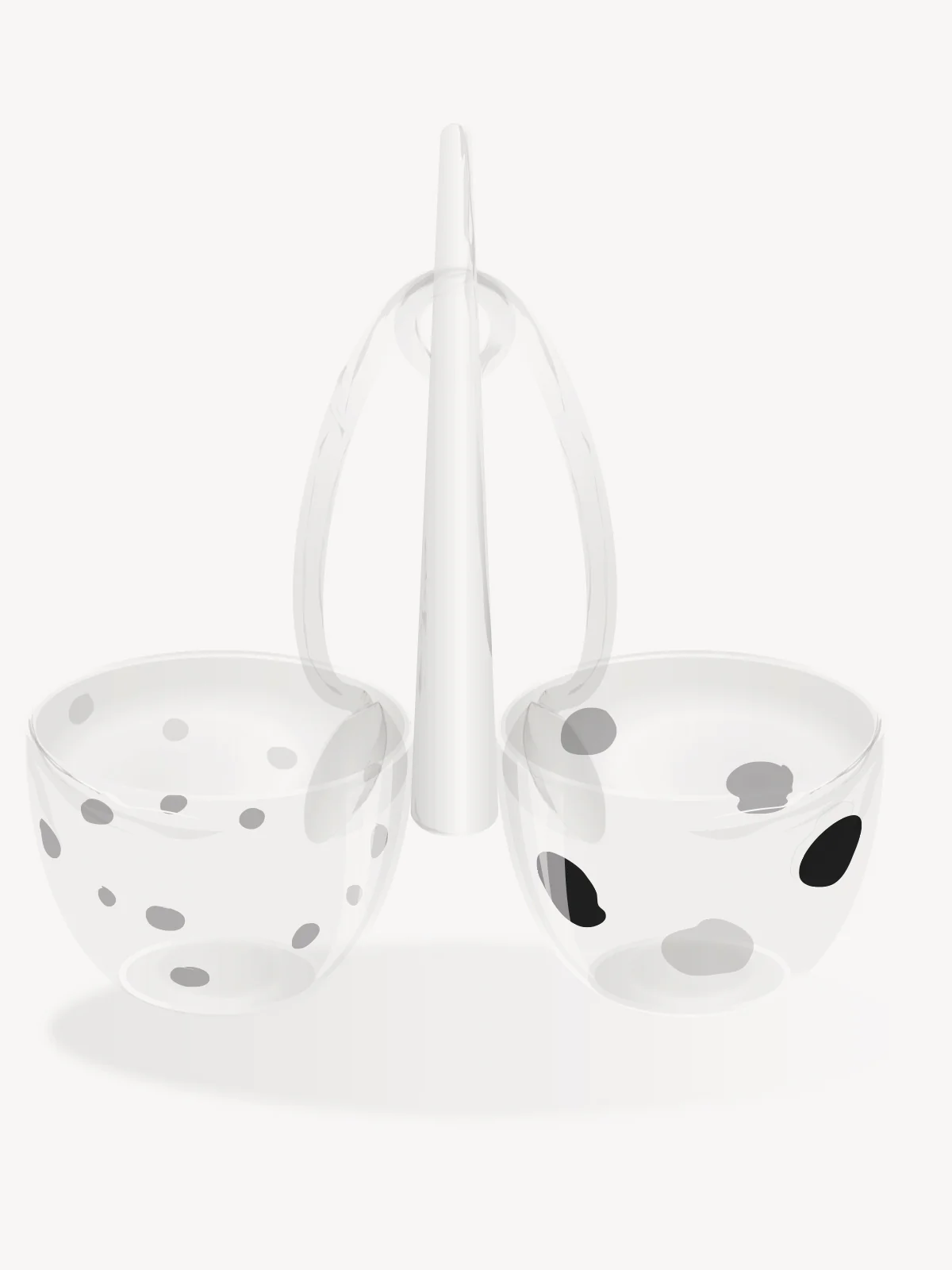 Aperitif bowls, in blown glass, proposed in a modern and functional design, characterized by a practical handle that joins the bowls and facilitates their movement to serve guests. Adorned with enamel decorations by craftsmen and therefore exclusive in their kind.