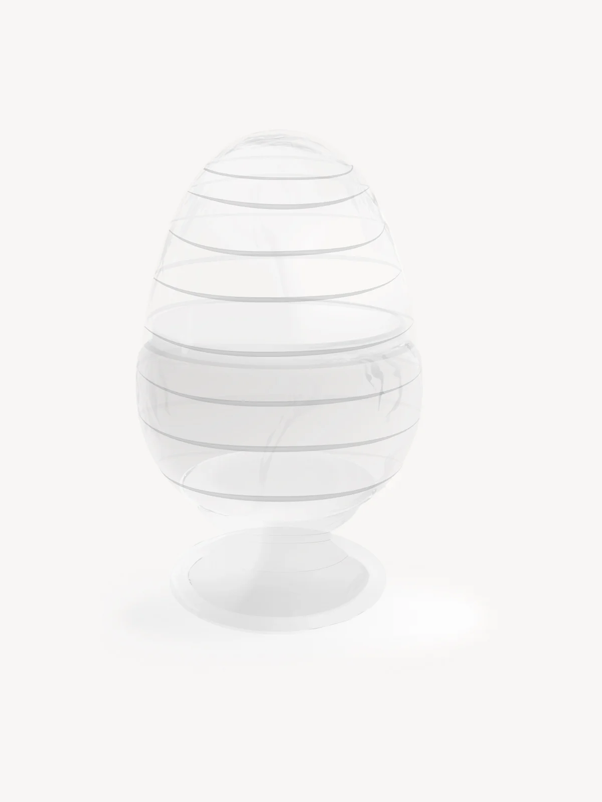 Enchanting candy bowl made by the finest Italian artisans in high-quality blown glass. Its egg-shaped design is enhanced and enriched by delicate and original patterns created by 100% Capri to complement the most sophisticated and refined furnishings. It is available in three different sizes and, therefore, can be used for various purposes and placements.