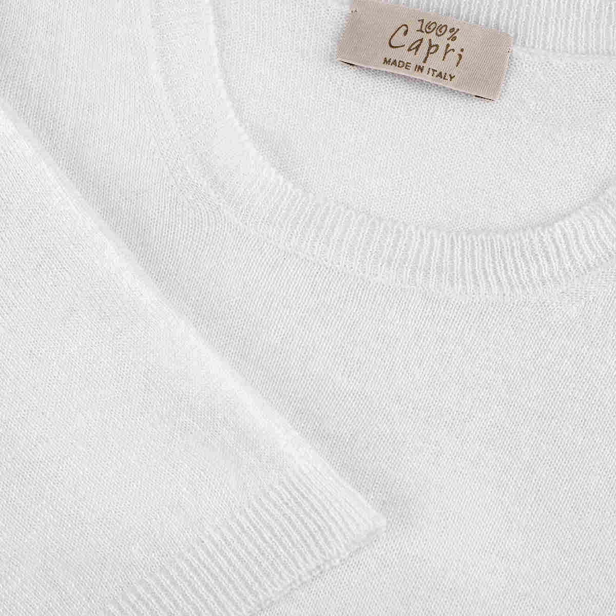 The pure linen T-shirt adopts a compact yet soft structure achieved through a fine, lightweight yarn that ensures an even and breathable knit. The surface remains uniform, displaying the natural texture of linen calibrated for daily use in warm conditions. The crew neck and ribbed trims on sleeves and hem define an essential, functional construction, while the regular fit broadens its versatility. A piece designed for elevated temperatures, suitable for both urban settings and coastal destinations.