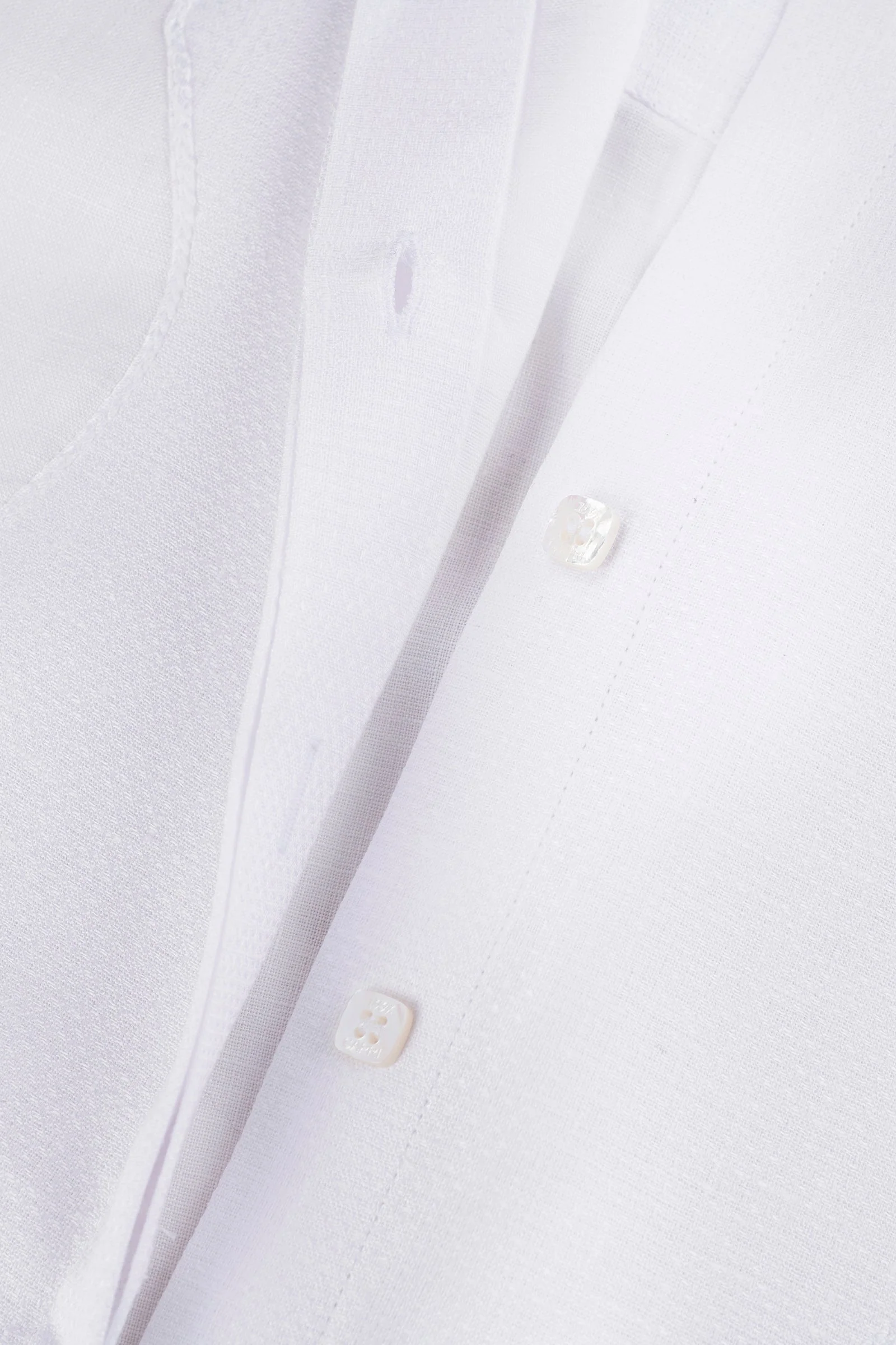 Read as an open chemisier, it fits naturally within a St. Barth yacht club context, remaining coherent in a poolside setting.