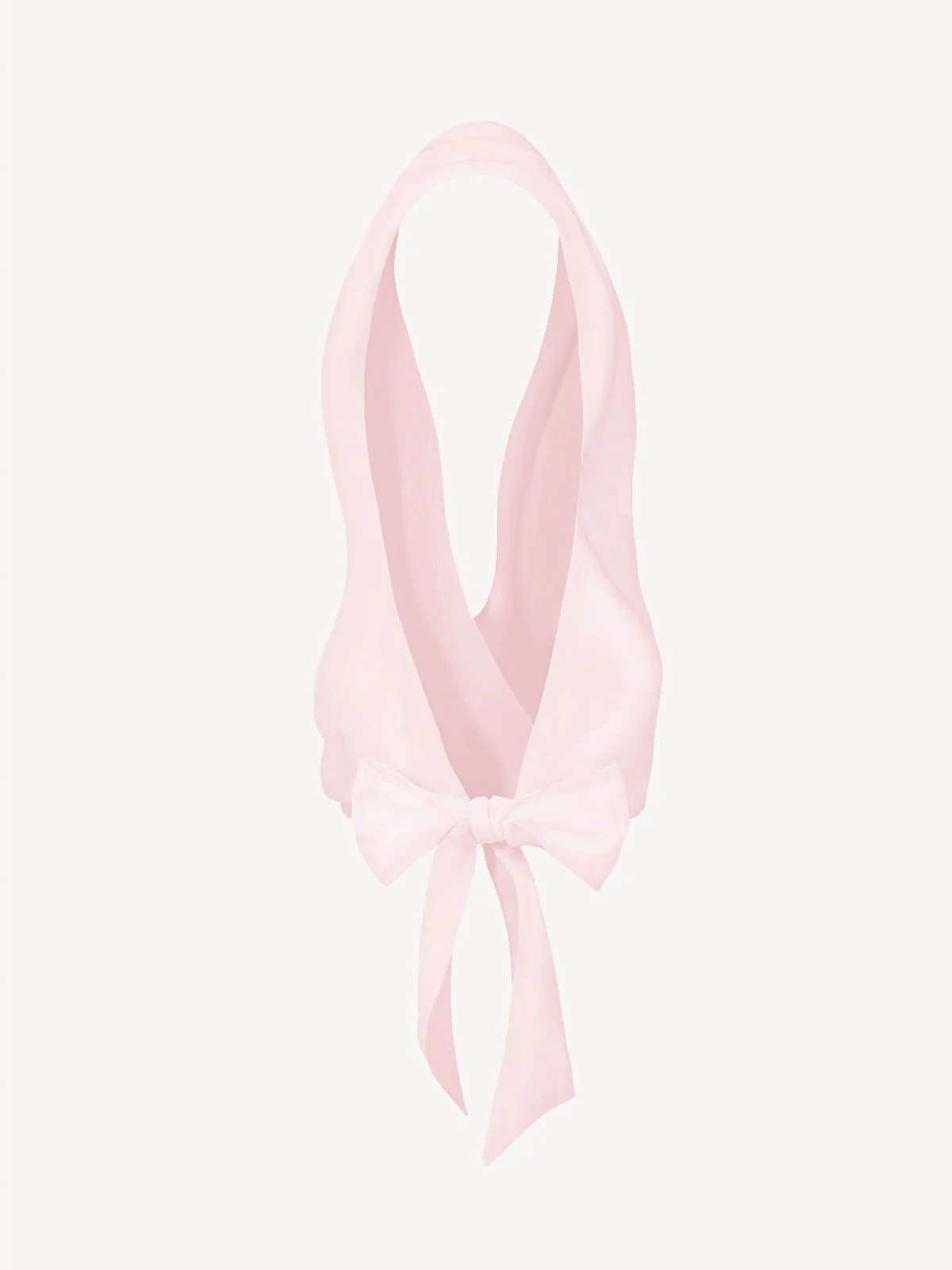 The Sarah Top draws attention to the neckline and the open back. Lightweight linen wraps the torso with continuity, forming a wide halter neckline that leaves the back fully uncovered. At the rear, the fabric gathers at the waist and closes through a structural knot forming a soft bow. The front remains controlled while the back defines the identity of the garment.