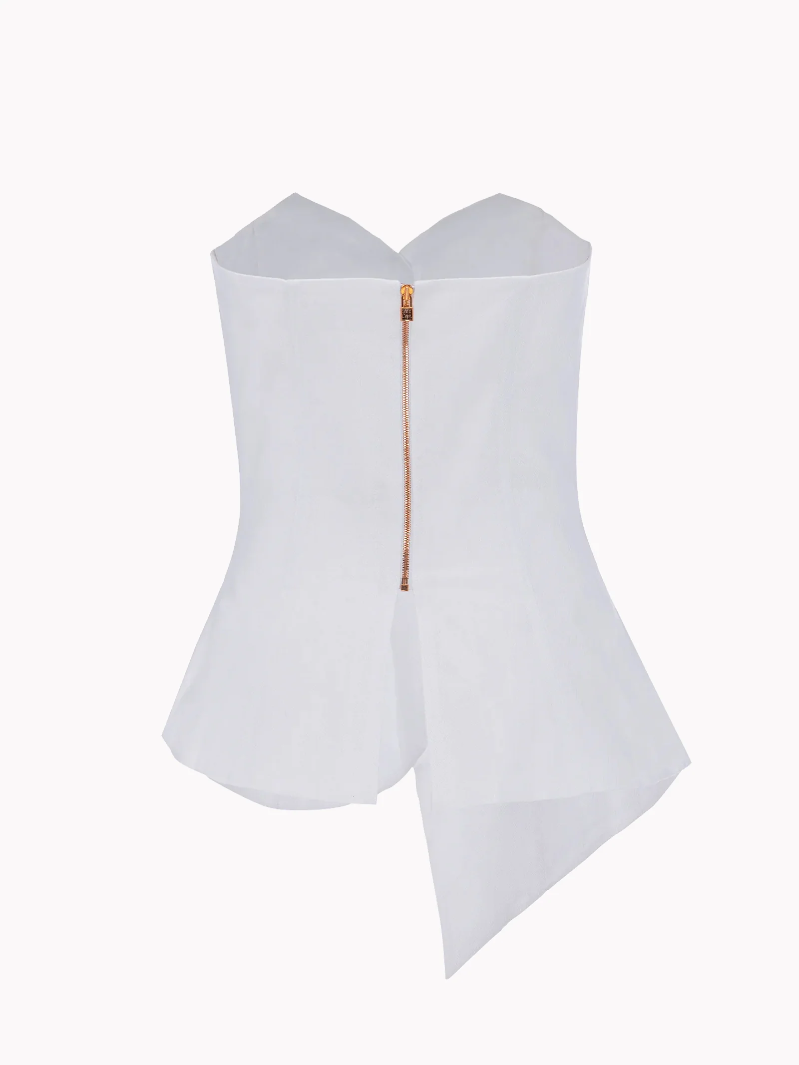 The Nicole Top takes the form of a shaped bodice that defines the bust with a clean, close-fitting structure. The sweetheart neckline introduces a soft line across the décolleté, while the cut follows the body with precision to the waist. The lower section opens into a flared volume that develops into an asymmetric hemline. The compact linen supports the garment’s construction while maintaining a smooth surface. The Nicole Top balances tailored structure with movement in the silhouette.